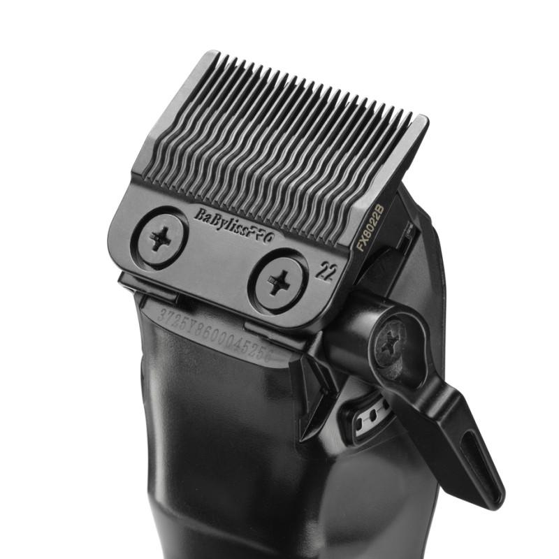 Машинка BaByliss PRO FX820E оснащена незнімним ножовим блоком Black Titanium, виготовленим за технологією MIM. Ширина ножів становить 45 мм з мінімальним зрізом волосся 0.5 мм (заводське налаштування) та можливістю регулювання під нульовий зазор. Ножовий блок має спеціальну конструкцію зубів S-Wave для захоплення більшої кількості волосся. Fade заточування дозволить з легкістю працювати однойменною технікою та створювати дуже плавні та чисті переходи без «сходинок». Ножовий блок встановлений на спеціальний механізм регулювання довжини зрізу волосся на 5 положень: 0.5 – 1.4 – 2.3 – 3.2 – 4.2 мм, що однозначно допоможе з плавними переходами, а також дозволяє збільшити кількість довжин для зрізу волосся без збільшення кількості насадок. Крім того, машинка має вбудований резервуар з олійкою для змащення ножів, щоб максимально збільшити ресурс роботи ножового блоку. Також ножовий блок відрізняється зменшеним нагріванням під час роботи.